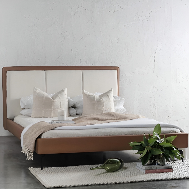 UltraLeather inlay headboard on a raised leg platform. Modern, clean and an excellent price point.