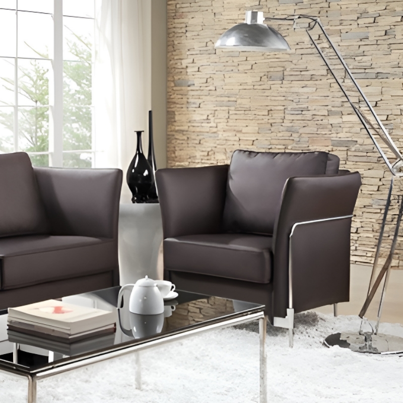 Winged arms create a scooped style coupled with chrome legs and a cushioned seat. The ultimate in comfort.
